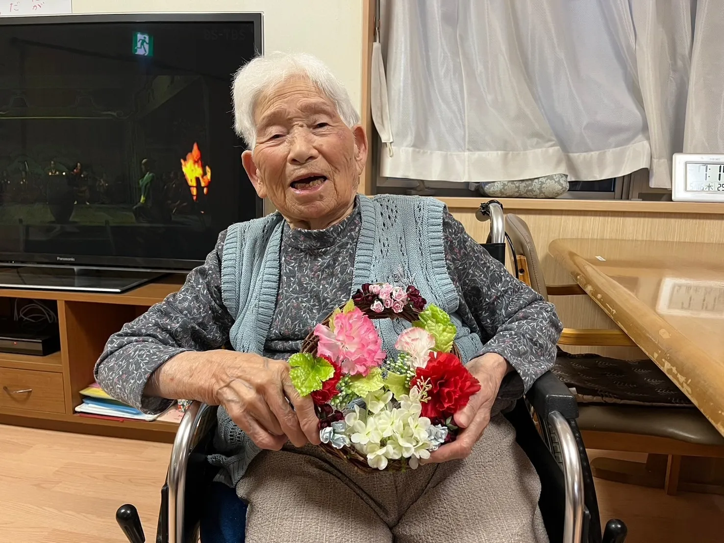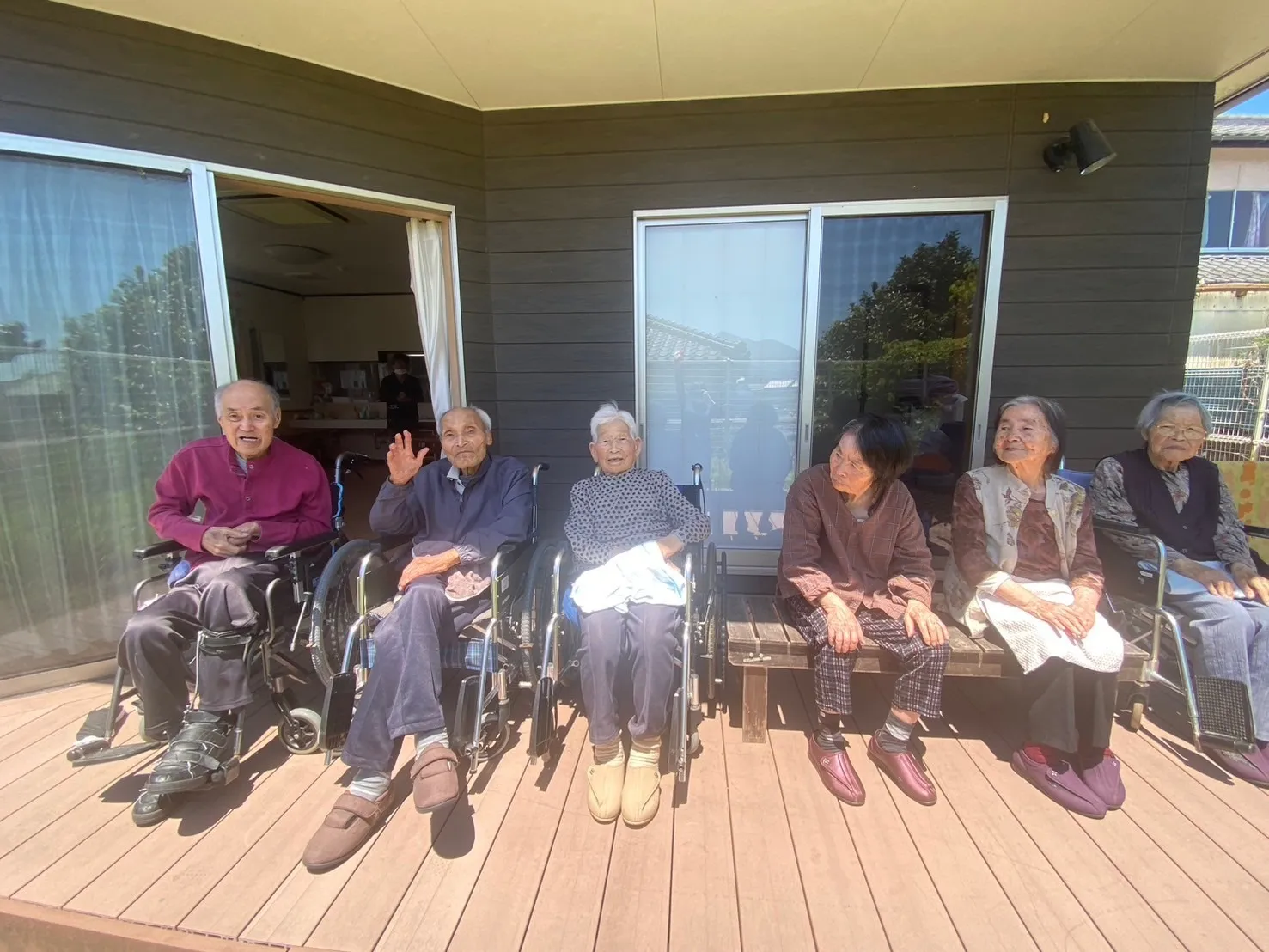 5月行事 5月5日は『子供の日』 子供の日は、端午の節句の日。子供たちがみんな元気に育ち大きくなったことをお祝いする日です。もともと5月5日は「端午の節句」で男の子の健やかな成長や幸せ 祈ってお祝いする日でした。 1984年に、5月5日を「子供の人格を重んじ、子供の幸福をはかると共に、母に感謝する」お休みと決められてから端午の節句が子供の日となったそうです。 グループホームでは5月7日に行いました。「子供の日は男ん子の日だけど、今もじゃいけな~?」と入居者様同士で会話をされておりました。行事食はいなり寿司に皆様喜ばれていました。布の手作り兜をかぶり写真撮影をしました。素敵な笑顔をしておられました。 『日向ぼっこ』 天気の良い日にベランダへ。「あったかいね~。」 「よか天気じゃ。」と会話が弾みました。 日中は暑い日もありますが、朝は少しまだ肌寒いようです。外へ出ると気分も爽快になりますね。 天気の良い日には散歩にも出かけたいと思います。 『レクリエーション』 唄の本を持ち職員と一緒に歌を唄いました。歌のフャイルは職員の手作り。恥ずかしそうに歌われる方もおられました。歌以外にも風船バレ―・輪投げ。魚釣りなども利用者様は楽しまれています。 『母の日』 母の日とは「母親に感謝の気持ちを伝える日」です。6人の女性利用者様がおられます。一人一人にプレゼントを渡すと喜ばれていました。職員手作りのリース花を見て「きれいやね~。」とおっしゃっていました。リースに2種類の花(造花,バラ・カーネーション)を付けて作りました。ご家族より花のプレゼントも届きました。 母の日の花といったらカーネーションが多いようですが薔薇や紫陽花もあるようです。 素敵な母の日になったのではと思います。私達も母への感謝を忘れずに。